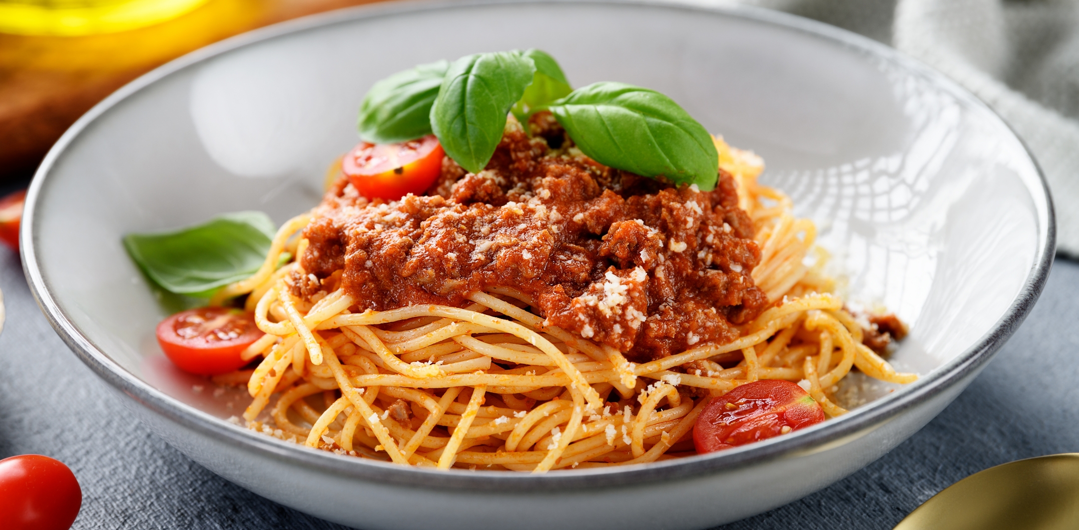 Toss the sauce through freshly cooked pasta, sprinkle over your freshly grated Parmesan, and finish with a few basil leaves.