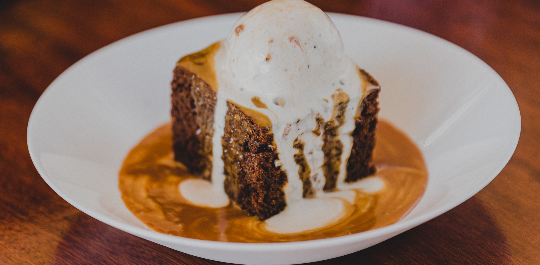 Pour the toffee sauce over the warm sticky toffee pudding.