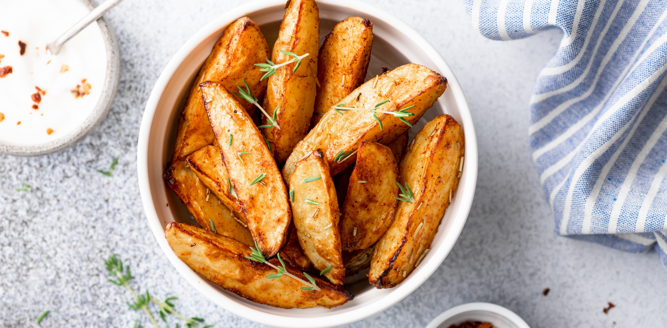 Cut the potatoes into wedges. Wash in cold water to remove excess starch. Drain well and pat dry.