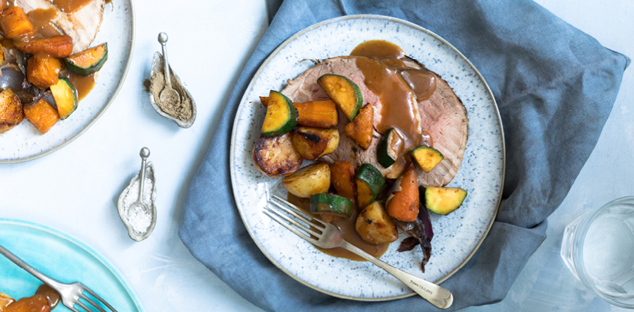 When the program has finished open the lid, turn over the lamb and add the seasoned veg. Close the lid, select the ROAST function and adjust the time to 40 minutes, then press START.