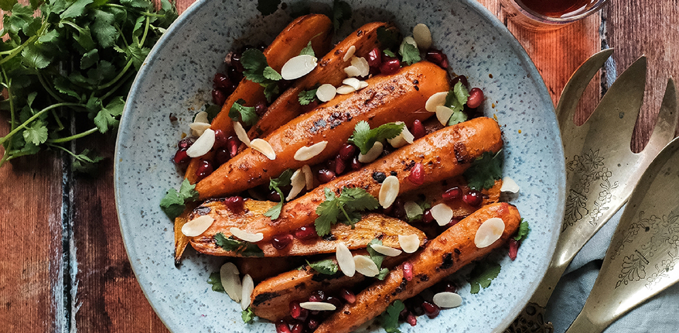 Serve with the coriander, almonds, and pomegranate seeds as a side dish or great as the main event.
