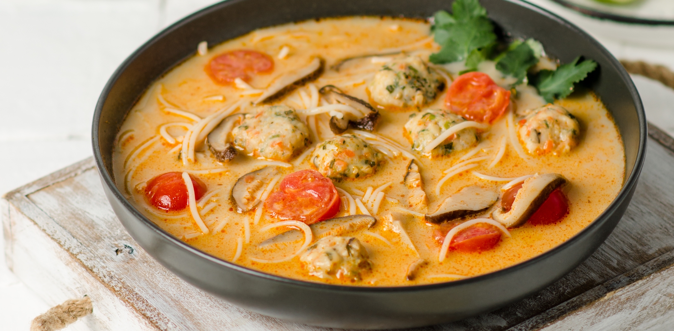 Put the coriander stems and garlic in a food processor, pulse until finely chopped, add the turkey and 1 tsp of the fish sauce, and blend again. Roll into meatballs about 3cm in diameter.